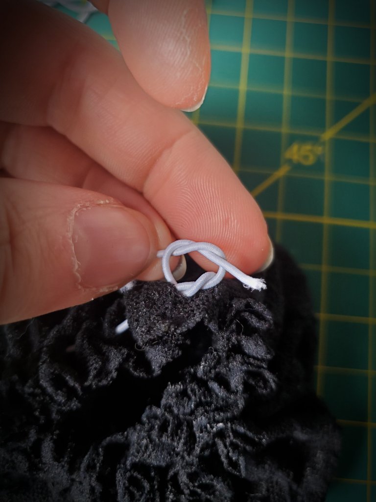 - It’s good practice to test the stretch of your elastic before you cut and tie it off.