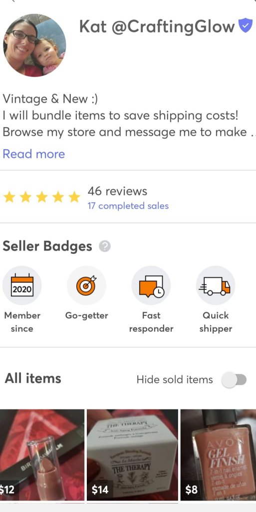 The other piece of getting started on Mercari is that we have built up our 5 star reviews to where we could potentially start selling higher priced items. Billy and I both have a selling profile, his is more geared towards guys and my store has a lot of girl stuff and cosmetics.
