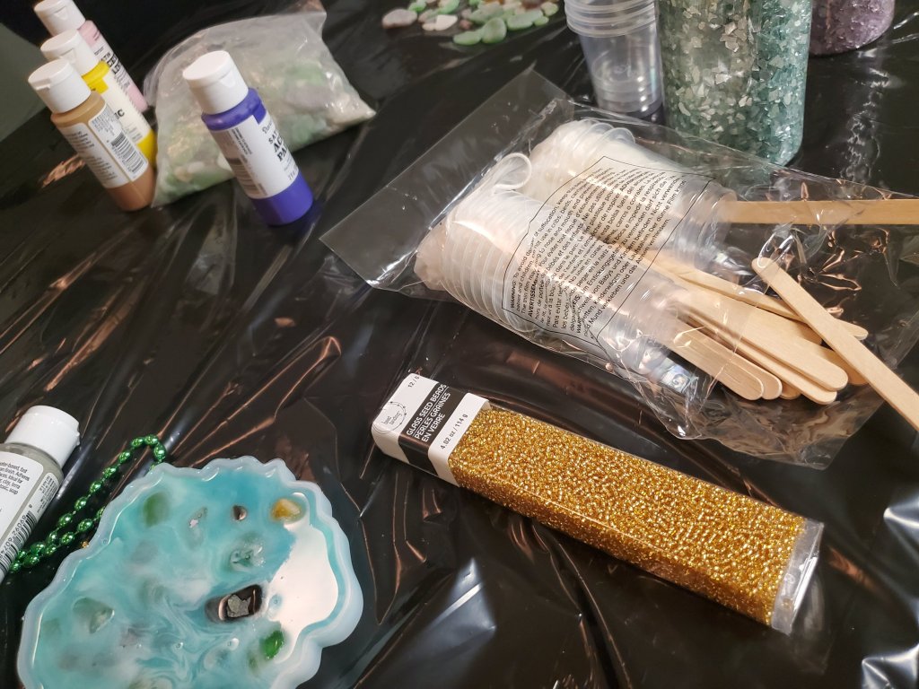 So we got together over a weekend and were discussing different activities to do. We both dabble in painting, sewing, and other various crafty things. We were trying to decide what would be the most fun and when we hit resin crafts both of us got really excited! I’m pretty sure craft videos had something to do with this. We had both seen enough to be enthusiastic but neither one of us was very confident. We figured this was a great reason to try it together, at least it would be fun, right!