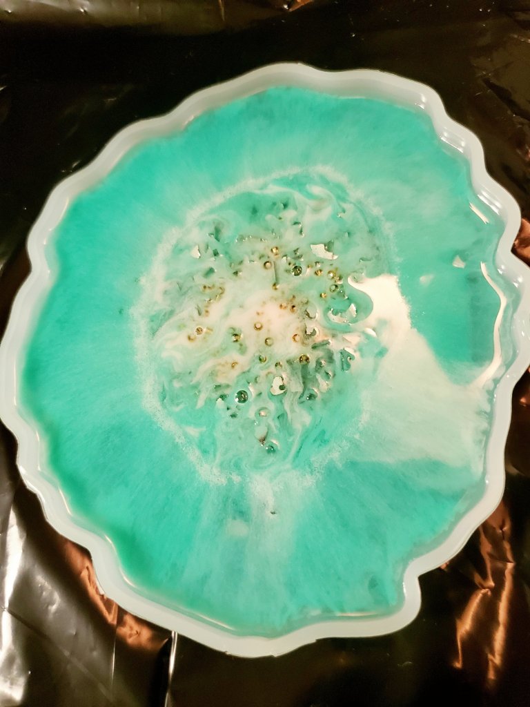 We followed the directions on the resin and mixed it up really well. You want it very well-mixed with as little bubbles as possible.