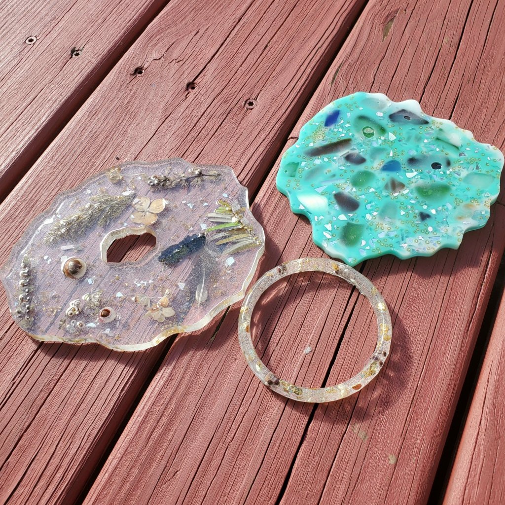 Did our resin projects turn out exactly as we hoped? Of course not, this was an experiment! Did we get some really cool keepsakes, yes we did! I’ll tell you all about what happened and what didn’t turn out as expected, but first here are some items the same or similar to what we were using.