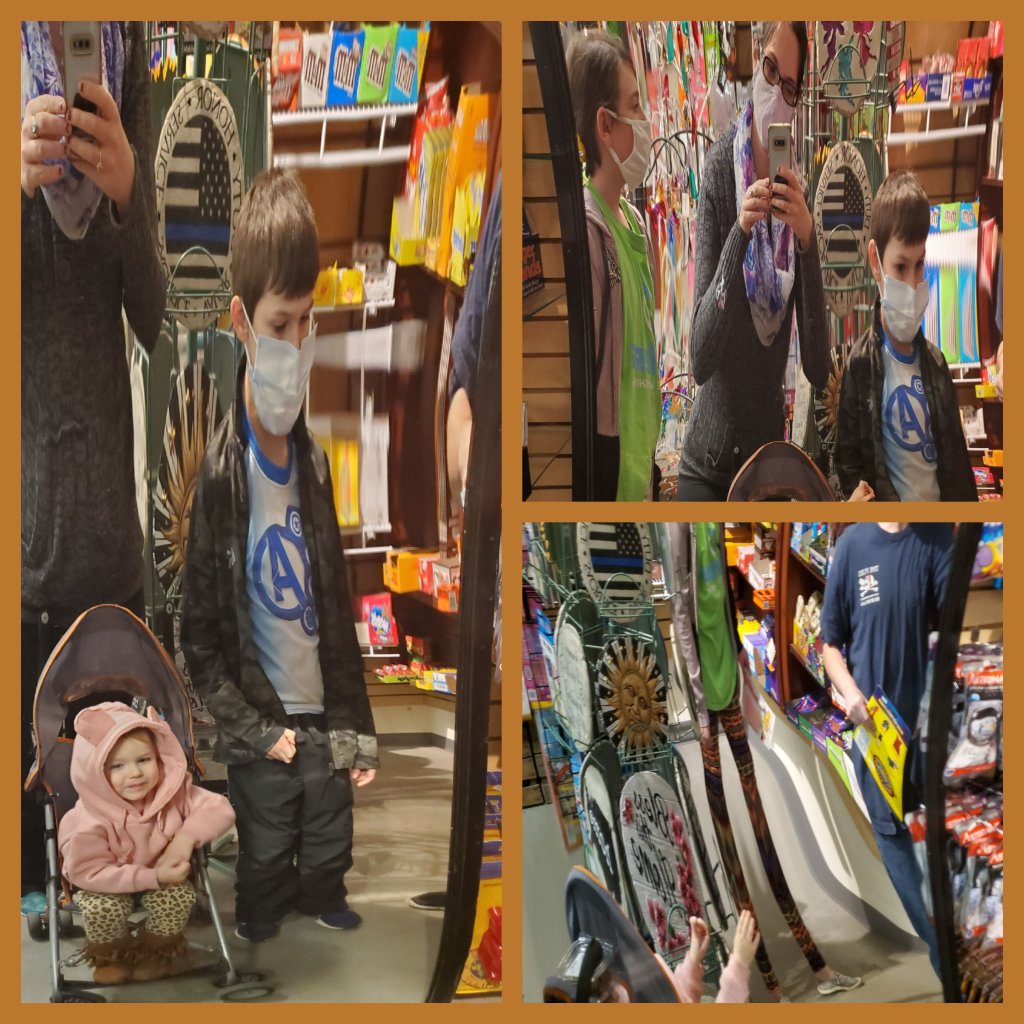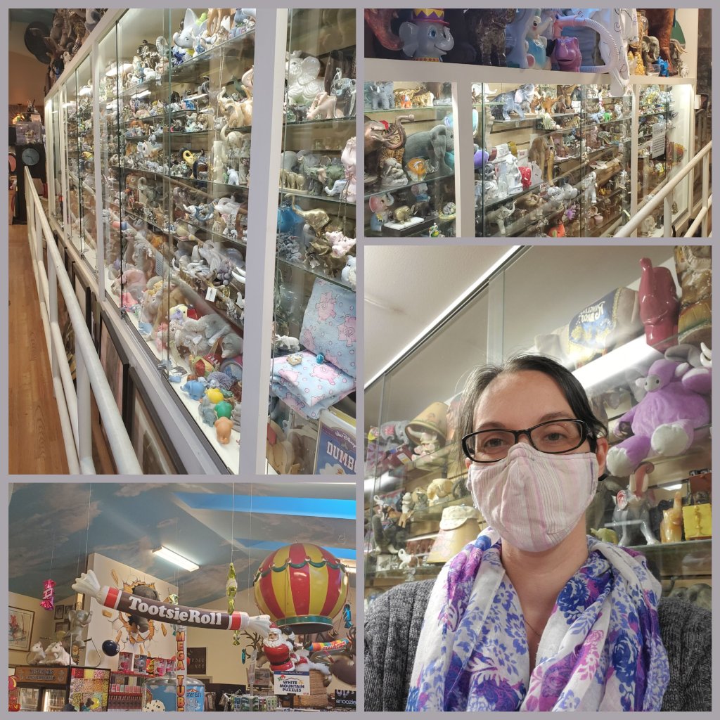 We always wander around outside when we get here. The tea pot museum has turned into a giant tea kettle!The gardens would be a great place to have a scavenger hunt. There are signs to read and many creatures big and small throughout.I didn’t take pictures of everything on purpose. One that would be near impossible and two it’s fun to explore and discover new things.You can spot some interesting characters as you walk around.We had a great time as we always do but were saddened when we saw the Enchanted Forest had vanished. Unfortunately the trees had gotten sick but there are big plans for this outdoor space!Well my youngest wasn’t the biggest fan of the big elephants. She was a little scared but we still had fun and sang Heffalumps from Winnie the Pooh while we checked out the Elephant Museum.We like to look for characters we know from cartoons and movies. It’s also fun to spot different elephant toys you had as a kid. I like elephants so I spotted quite a few things I had in the past.Then we goofed off in front of the fun house mirror. Then checked out some items in the gift shop.