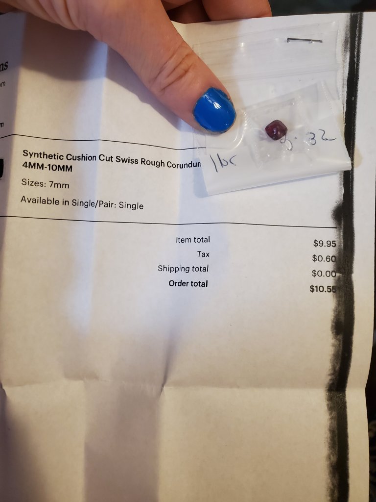 I went on Etsy and bought a 7mm synthetic cushion cut corundum ruby from Instagems. I was so happy when I found out I could easily place orders for stones in different sizes and in a variety of cuts.