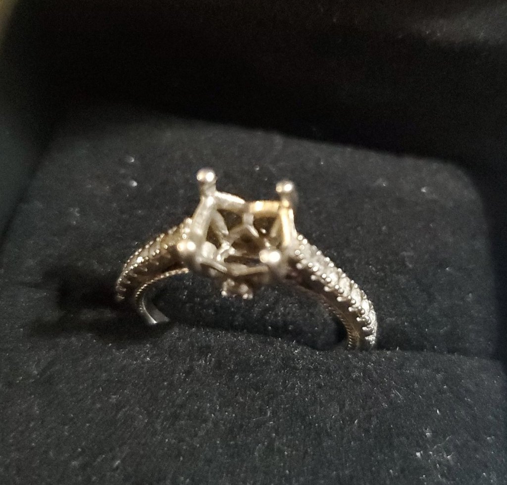 I was ok with possibly messing this up, as I couldn’t figure out what to do with the original setting other than toss it in a drawer or throw it away. I was willing to gamble that I could get the stone set it the setting without breaking a prong. If I had broken the prong it wasn’t a huge loss.