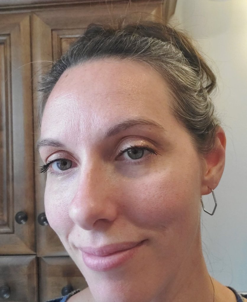 I am also using the Pink Topaz shade of the Glimmershadow which I also love and looks good on both hazel/green eyes and my daughter’s lovely sky/blue eyes.